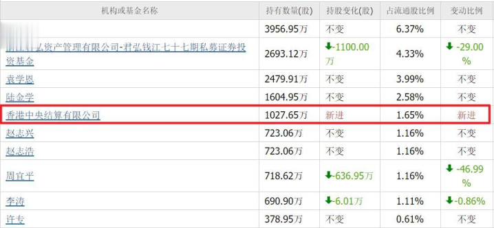 三季度,北向新进1027万股,位列第六大流通股东。