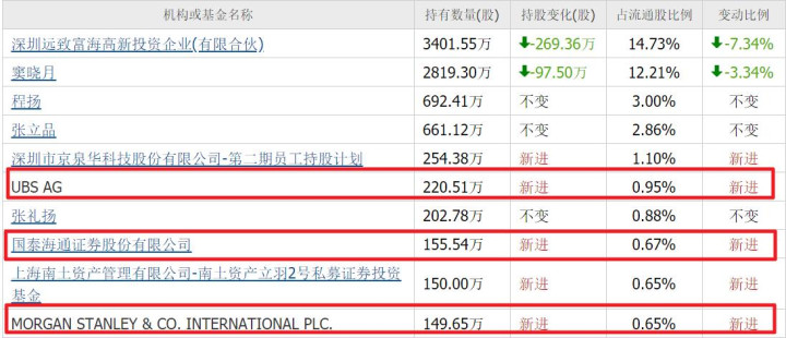三季度,瑞银新进220万股、摩根斯坦利新进149万股,分别位列第六和第十大流通股东。